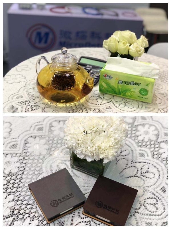 微探科技為前來參展的領(lǐng)導(dǎo)及觀眾準(zhǔn)備了茶水及禮品,一杯暖茶,一絲溫暖,一份禮物,一份友誼。
