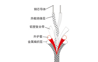 纜式線型感溫火災(zāi)探測器JTW-LD-WT302C(屏蔽型)感溫電纜部分的外金屬編織結(jié)構(gòu)增強了感溫電纜的抗拉伸能力、抗電磁干擾能力,適用于防爆場所或電磁干擾的場所。