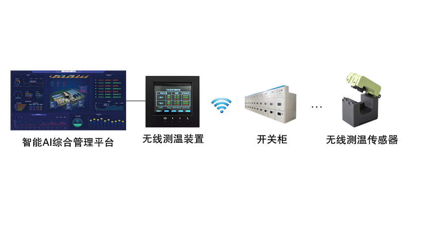 無線測溫傳感器用于測量帶電物體表面或接點處的溫度,如開關(guān)柜內(nèi)的觸點、母線連接處、變壓器等的運行溫度。無線測溫傳感器是由溫度傳感器、邏輯控制電路、無線調(diào)制接口等組成。傳感器將采集到的溫度信號通過無線網(wǎng)絡發(fā)送到智能無線測溫裝置。